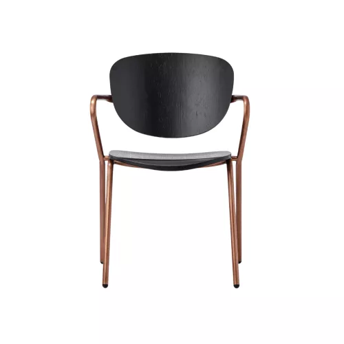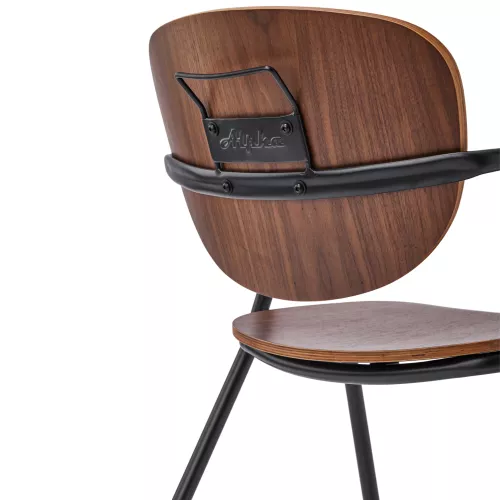 Alphie A is a refined metal chair with armrests, crafted with a steel frame and veneer seat and back. Its elegant structure can be customized in multiple finishes, adapting to various interior styles. Designed for HoReCa spaces, it combines comfort, durability, and design versatility.
