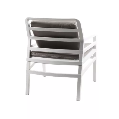 The Aria chair is a perfect blend of modern design and outdoor functionality. Crafted from durable polypropylene with non-slip feet, it ensures stability and safety on any surface. Available with a white or tortora frame, it offers vibrant cushion options in lime, sardinia, and grey, allowing you to personalize your space. This weather-resistant chair is ideal for outdoor restaurants, cafés, and bistros, combining comfort, elegance, and practicality in one stylish solution.