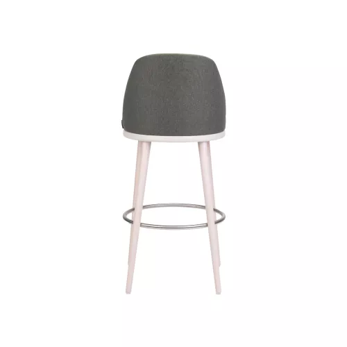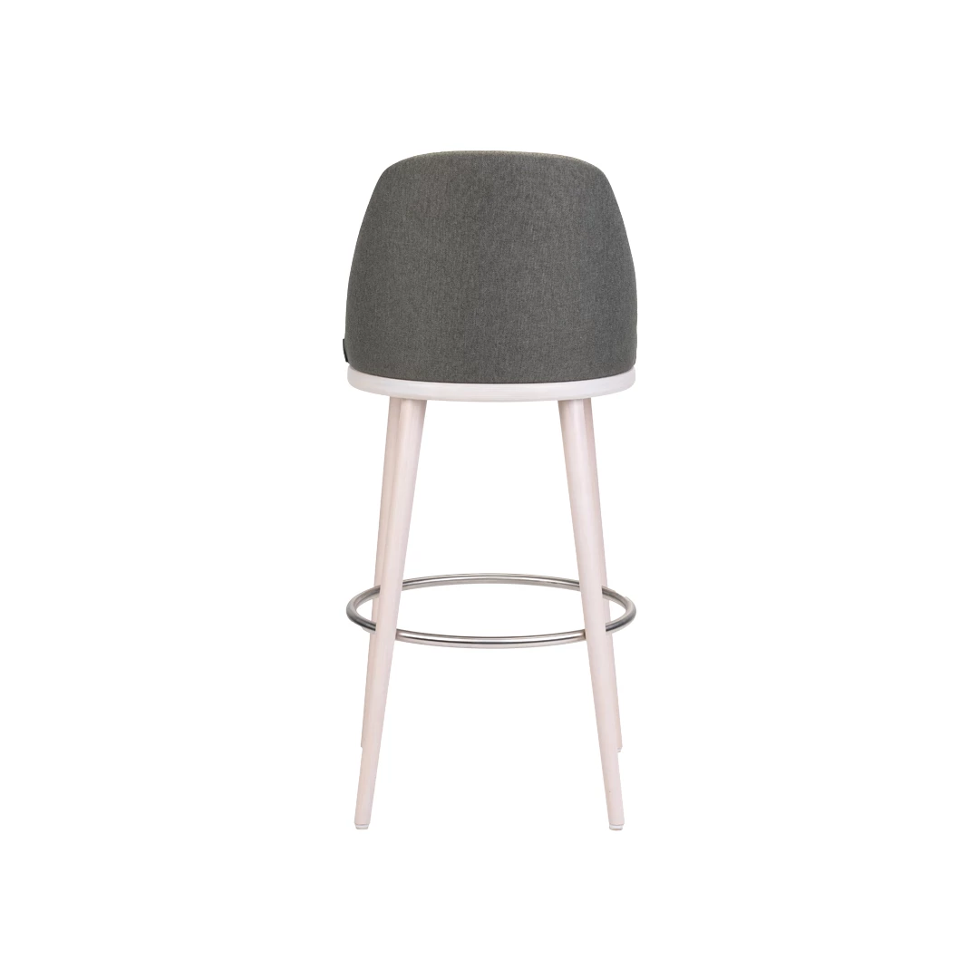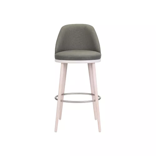 Audrey BK is a refined wooden barstool designed for horeca environments. It features a solid beech wood frame, available in various stain finishes, a metal footrest for added durability, and a fully upholstered seat and backrest. With customizable fabrics, it suits a range of interior design styles in bars and other horeca locations.
