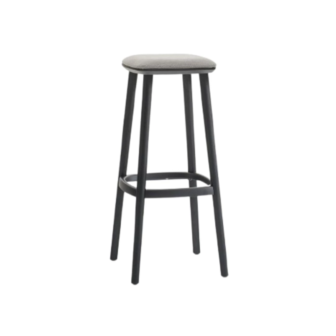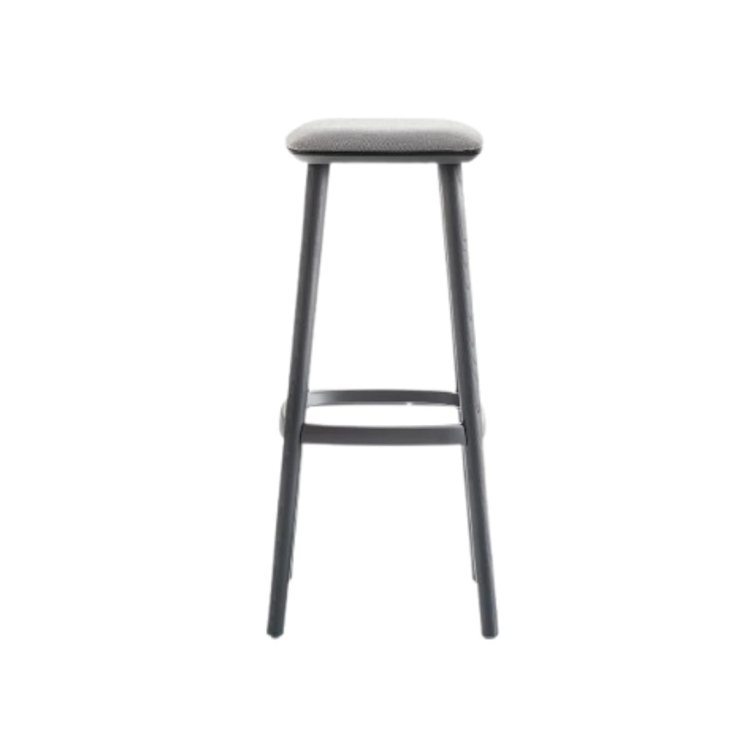 The Babila 2706 A barstool reflects the collection’s harmony of tradition and innovation through a timeless, simple design. Made of ash wood, it features tapered legs seamlessly joining an upholstered seat in flexible polyurethane, covered in fabric. A die-cast aluminum footrest adds a modern touch. Finished with a water-based, matte anti-scratch lacquer that reveals the wood grain. Includes interchangeable glides: felt (type 15) for delicate floors, and plastic (type 17) for soft or rough surfaces.