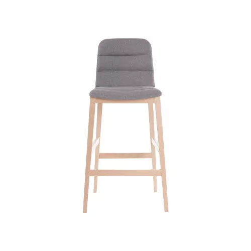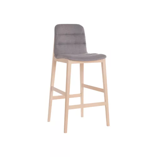 The Bello BK barstool blends refined design with comfort and durability. Its beech wood frame, available in a range of stain finishes, features a wooden footrest for a cohesive look. The upholstered seat and backrest, offered in quality fabrics or faux leather, ensure lasting comfort. Perfect for bars, cafés, and other horeca spaces.