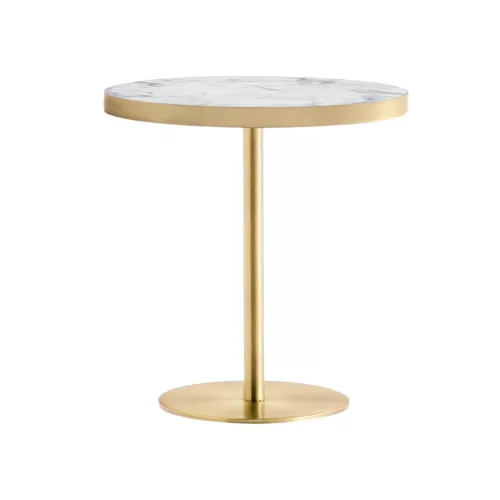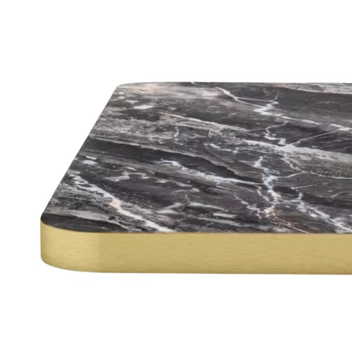 Tabletops with chipboard core, available in a variety of shapes and sizes. Finished with a flat brass-look ABS edge, 30 mm thick. An elegant and durable option for contract and hospitality use.
