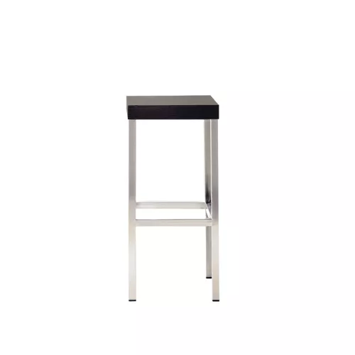 The Cube 1401/RV stool embodies minimalist elegance through its clean, geometric design. Its sturdy square steel frame, available in satin or chrome finish, complements the veneered seat in oak or wengè. A perfect blend of simplicity and sophistication, Cube 1401/RV suits bars, cafés, and other contemporary horeca environments.