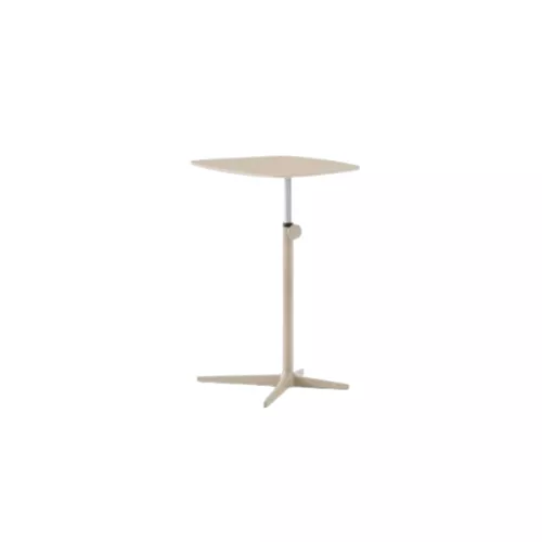 Diego is a versatile side or coffee table for interiors, featuring a sliding stem and sturdy aluminium base with four spokes. Its steel column ensures stability, while a knob allows easy height adjustment. The soft trapezoidal HPL top is available in coordinated or contrasting finishes, combining style and functionality.