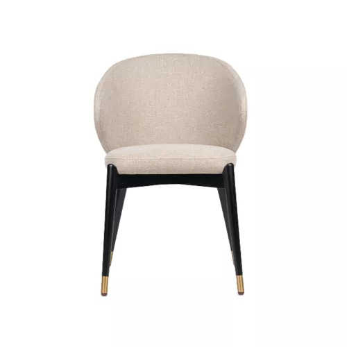 Elicia Round A is a modern upholstered chair with a curved backrest for enhanced comfort. Featuring both seat and backrest upholstered in durable fabrics or faux leather, it's built for intensive use. The sturdy beech wood frame, available in various stains, makes it ideal for any HORECA location and a variety of interior design styles.
