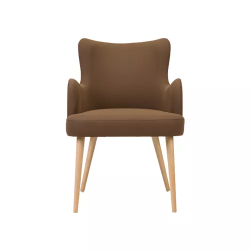 Kelly Flow is a wooden chair with armrests that reflects the elegance of mid-century modern design. Built from solid beech wood in various stain options, it features an upholstered seat and backrest in professional fabrics or faux leather. Designed for horeca spaces, it offers comfort, durability, and seamless integration into diverse interiors.