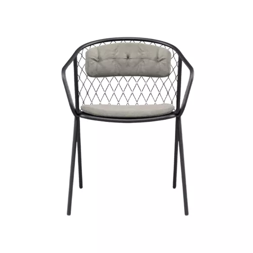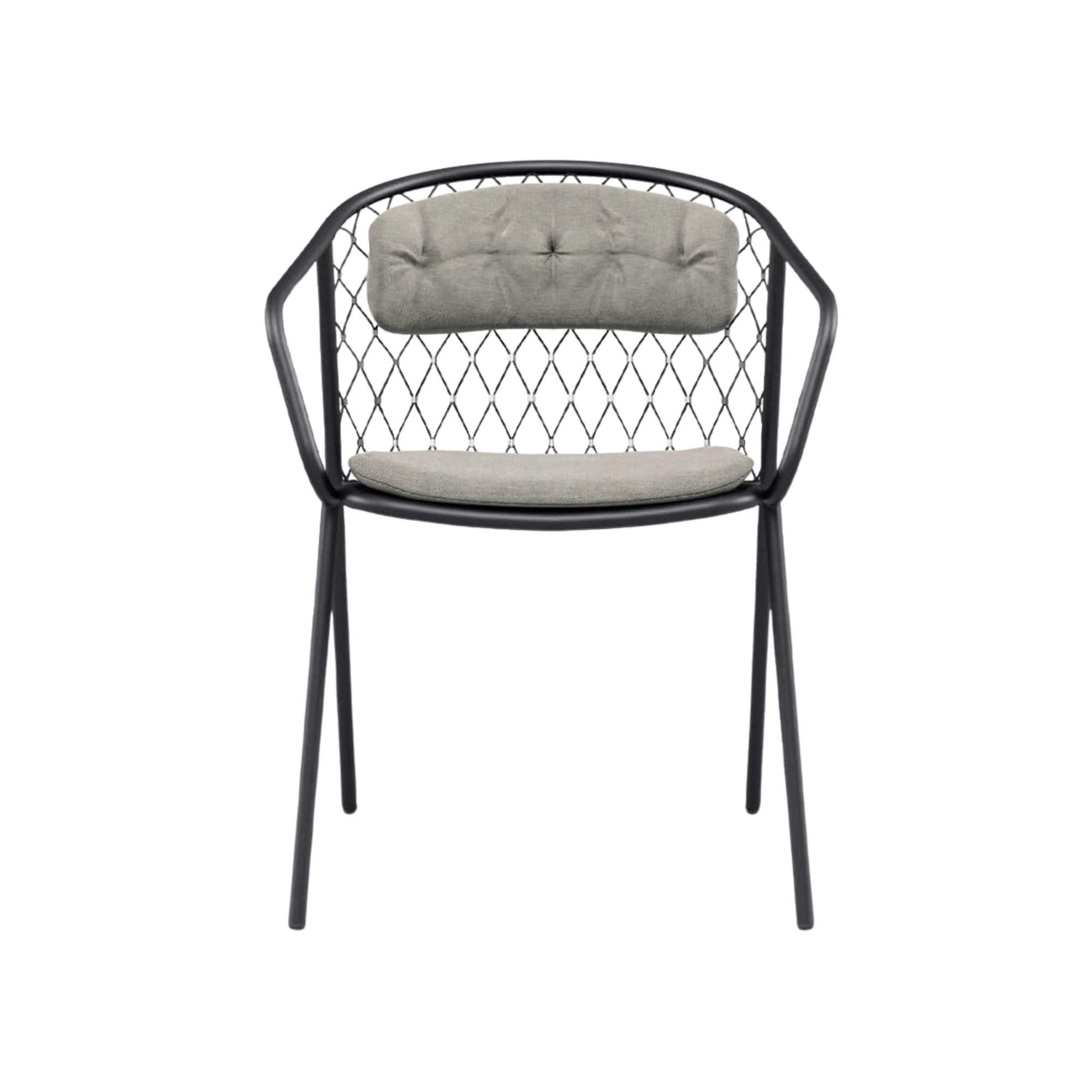 The Nef A chair is the perfect choice for upscale terrace dining in restaurants, cafés, and bistros. Constructed with a durable aluminum frame and featuring stainless steel and synthetic rope, it’s designed to withstand the elements while offering comfort and style. The seat cushion and back cushion provide additional comfort, making it ideal for outdoor settings where guests will be seated for extended periods. With armrests for added relaxation, the Nef A chair is both a functional and stylish addition to any outdoor venue. Its contemporary design makes it versatile for any modern dining environment, while the materials ensure long-lasting performance, even in high-traffic areas. Whether you're outfitting a café terrace or a restaurant's outdoor space, the Nef A offers both elegance and durability.