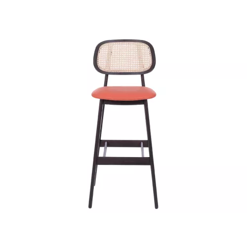 This beech wood barstool with a cane back blends timeless elegance with reliable functionality. The natural cane panel brings breathability and vintage charm, while the robust beech frame ensures stability under heavy use. Designed for stylish hospitality venues, this barstool can be customized with various finishes and upholstery options to match your interior concept.