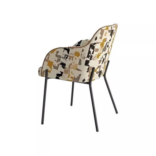 Romie A is a comfortable chair with armrests, designed with a durable powder-coated steel frame available in any RAL color. The seat and backrest are upholstered and can be customized with a wide selection of professional fabrics or faux leather. Ideal for various horeca environments and interior design styles.