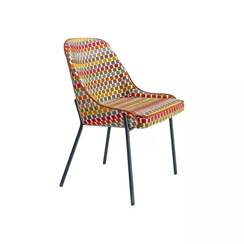 Romie S is a comfortable chair with a strong steel frame, powder-coated and customizable in any RAL color. It features a fully upholstered seat and back, with a wide selection of high-quality fabrics or faux leather. Designed for versatility, Romie S fits perfectly in horeca environments and various interior design styles.