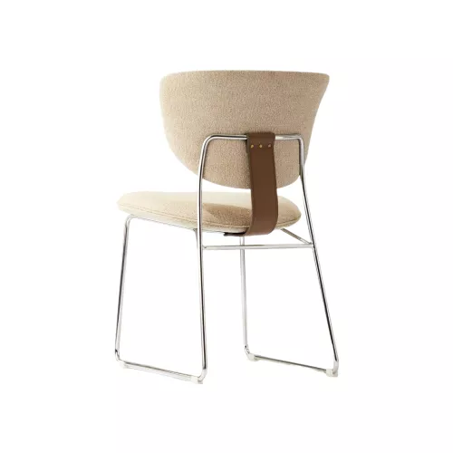Sleek is a modern metal chair featuring a sturdy steel sled base frame, offering stability and style. Both seat and backrest are upholstered with high-quality fabrics or faux leather available in a wide variety of options. Designed for comfort and durability, Sleek adapts perfectly to various HoReCa venues and diverse interior design styles.