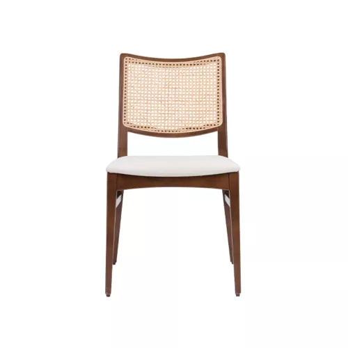 Spirit S Wicker is a stylish wooden chair designed for horeca settings. It features a durable beech wood frame, customizable in various stain colors, with an upholstered seat and a cane backrest for natural texture. As part of the Spirit collection, it offers both elegance and practicality for diverse interior styles.
