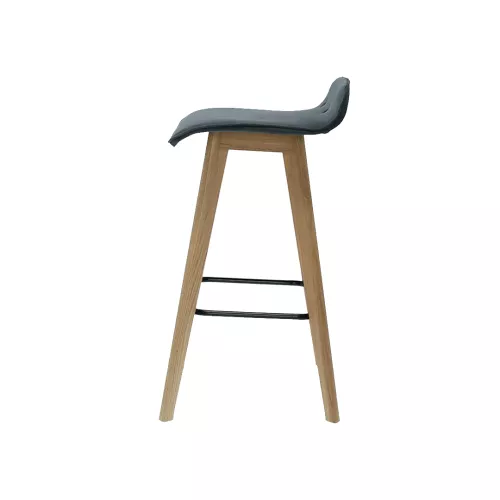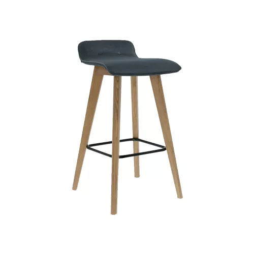 The Stream BK barstool combines contemporary minimalism with high-quality craftsmanship. Its beechwood frame supports a comfortable upholstered seat, while a sturdy metal footrest adds stability. Available in multiple wood stains and professional fabrics or faux leather finishes, it is designed to complement a variety of HORECA interiors, from modern bars to stylish lounges.