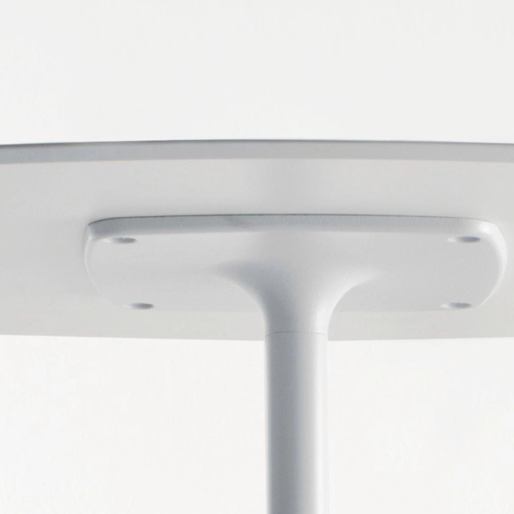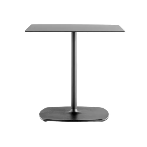 Table base with rounded corners made of sandblasted cast iron, paired with a tubular steel column.