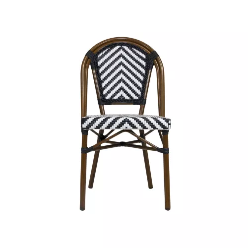 Discover the Tone terrace chair, an ideal seating solution for restaurants, cafés, and bistros. Crafted with a sturdy aluminum frame for lightweight durability, it features an attractive bamboo look that brings natural warmth and elegance to any outdoor or indoor space. Thanks to its UV-resistant construction and flat weaving, Tone is built to withstand sun and weather, ensuring long-lasting beauty. Its stackable design (up to 19 pieces) allows for efficient storage and easy handling, making it perfect for high-traffic hospitality settings. Available in a range of color combinations — Classic Bamboo/Black-White, Light Bamboo/Beige-Blue, Light Bamboo/Beige-Pink, and Light Bamboo/Black-White — Tone offers versatility and style to match any décor. Bring comfort, practicality, and a refined aesthetic to your terrace with Tone.