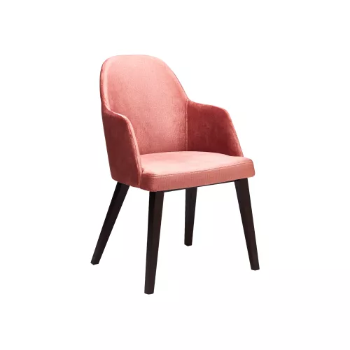 This upholstered armchair offers a perfect blend of elegance and durability, making it ideal for restaurants, lounges, and hospitality venues. Designed with a fully padded seat and backrest, it features high-density polyurethane foam for long-lasting comfort under intensive use. The base is crafted from solid beech wood and can be customized in various wood finishes. Available with either round or square legs, the armchair maintains a refined silhouette and is fully upholstered in professional fabrics or synthetic leather, offering flexibility in style and design.