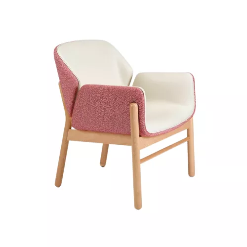The Abbie Lounge is a sophisticated lounge chair designed for horeca settings. Featuring a sturdy beech wood frame with multiple stain options, it combines comfort and style with its upholstered seat and backrest. Available in a broad selection of professional fabrics or faux leather, it suits diverse interior concepts, making it perfect for bars and various hospitality spaces.