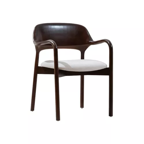 The Arven chair blends timeless design with lasting comfort. Its wooden frame and backrest are complemented by a soft upholstered seat, while the rounded lines of the armrests create a distinctive, elegant look. Available in a wide range of professional fabrics, Arven is ideal for horeca locations seeking style and durability.