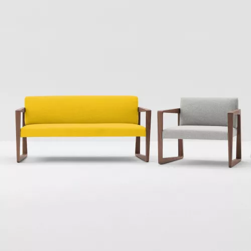 The Askew 5C36 lounge armchair features a sturdy beech wood frame available in various stain finishes. It offers a comfortable upholstered seat and backrest, crafted from a wide selection of durable professional fabrics or faux leather. Designed for any horeca setting, this chair’s versatile style and customization options ensure it complements diverse interior designs effortlessly.