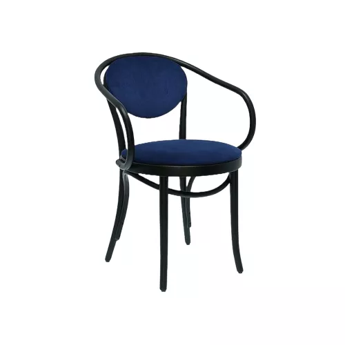 The Bistro 2 A UPH chair combines classic bistro elegance with added comfort thanks to its armrests. Crafted from durable beech wood in a bentwood design, it features an upholstered seat and backrest available in a wide selection of fabrics or faux leather. Traditional craftsmanship ensures lasting durability, making it ideal for stylish HoReCa interiors.