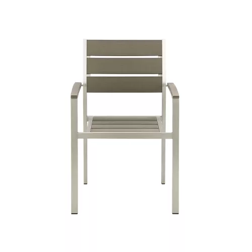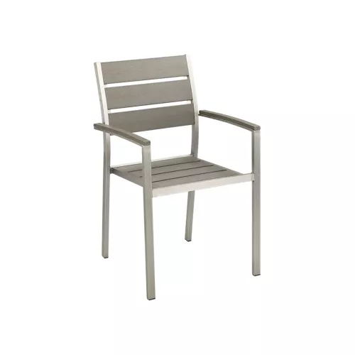The Dave chair is a stylish and durable choice for any terrace or outdoor setting. Built with a strong brushed aluminium frame, it offers exceptional resistance to weather and corrosion, ensuring long-lasting use. The seat and backrest feature grey polywood slats, combining the natural look of wood with the durability of synthetic material. Lightweight yet sturdy, the Dave chair is ideal for any commercial outdoor spaces. Its modern design, easy maintenance, and comfort make it a perfect addition to patios, gardens, or open-air dining areas.