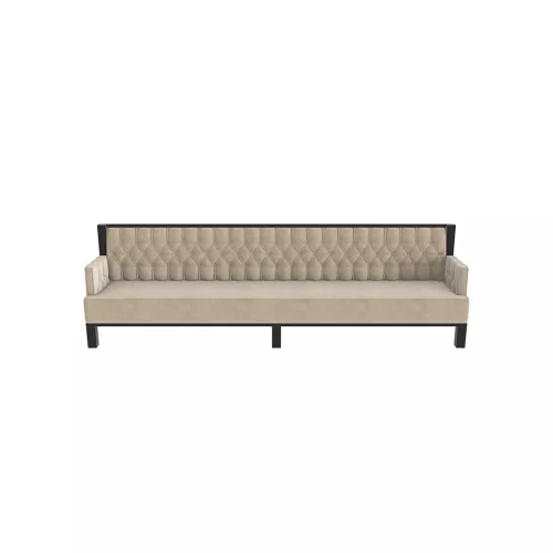 The sofa is traditionally hand-upholstered, just as it was a century ago. It features a beechwood frame with a durable polyurethane lacquer finish. High-density foam ensures lasting comfort and resistance to wear. Available in a variety of premium fabrics or synthetic leather, with customization options for your own fabric.