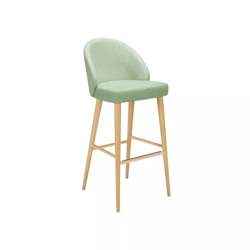 A refined and versatile barstool featuring an upholstered seat and back that offer both comfort and timeless appeal. Its simple yet elegant design allows it to adapt effortlessly to any interior style, from contemporary to classic settings. The legs, crafted from stained beech wood, bring natural warmth and durability to the piece. The seat is made with high-density foam to ensure long-lasting comfort and resistance to intense daily use. Available in a wide selection of professional fabrics, with a rich palette of colors and textures to suit any Horeca environment.