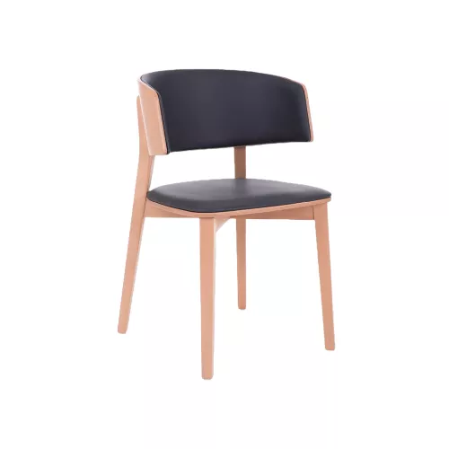 Crafted with a sturdy beech wood frame finished in a protective polyurethane lacquer, this chair is built for both elegance and endurance. High-density foam padding provides long-lasting comfort and resistance to intense wear, making it ideal for demanding hospitality environments. The product is fully customizable with a wide selection of professional-grade fabrics to match any interior.