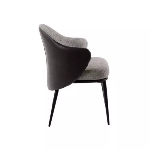 The Mary chair presents a refined and distinctive silhouette, featuring an elegantly curved, elongated backrest that subtly evokes the shape of a flowing skirt—an aesthetic detail that enhances its graceful presence. The robust metal frame is fully customizable, allowing for a wide range of color options to seamlessly complement any interior style. A standout element is the uniquely curved front edge of the seat, thoughtfully designed not only to define its dynamic profile but also to provide enhanced seating comfort. Mary is available with an extensive variety of upholstery materials, textures, and color palettes, offering endless possibilities for tailoring the chair to suit diverse environments and design visions.