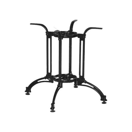 MO-12 XL is a robust outdoor table base designed for horeca use. Made of cast aluminium with a black powder-coated finish, it offers high resistance to weather and UV exposure. At 72 cm height, it supports tabletops up to 80x80 cm or ⌀100 cm, with various styles available separately. Its durability and versatility make it ideal for high-traffic outdoor environments.
