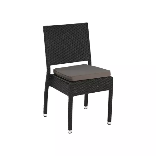 Mond S is a professional-grade outdoor chair designed for horeca environments. Built with a powder-coated aluminium frame and a black flat P.E. wicker seat and backrest, it combines comfort with durability. UV- and weather-resistant, it’s stackable up to 8 pieces—perfect for outdoor terraces, cafés, and other hospitality venues.