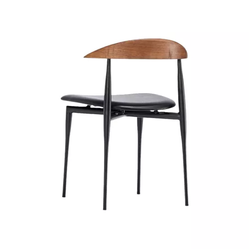 North is a versatile metal chair with a durable steel frame, upholstered seat, and wooden backrest. It offers a wide variety of customization options in professional fabrics or faux leather. A great choice for HoReCa settings and a range of interior design styles.