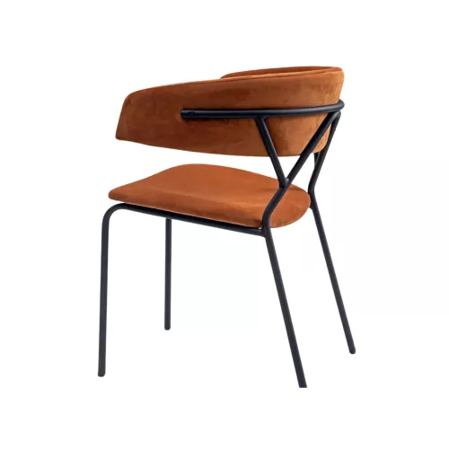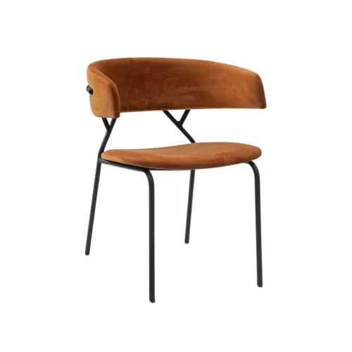 Ombra is a refined upholstered chair with armrests, built on a sturdy metal frame available in various stain finishes or RAL colors. Designed for hospitality, it offers countless upholstery options in professional-grade fabrics. Its adaptable design makes it the perfect fit for diverse horeca spaces and interior styles.
