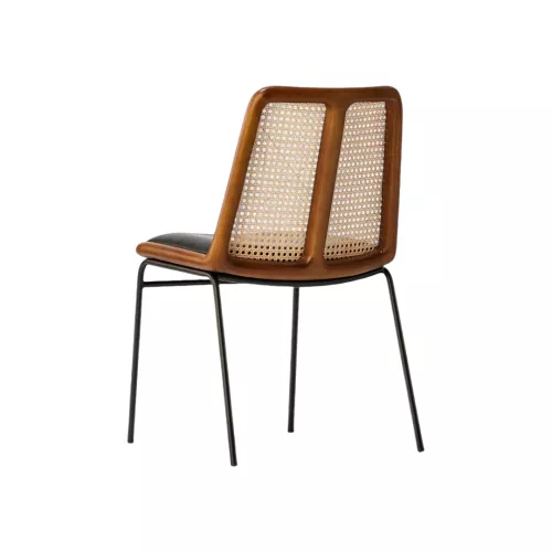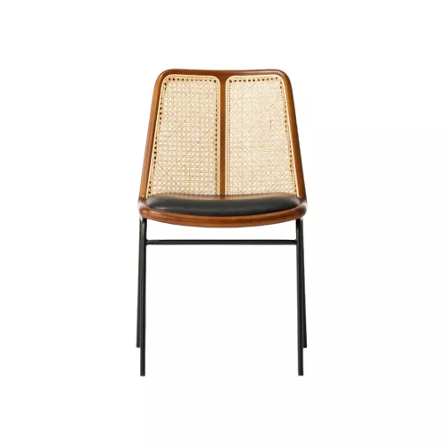 Oregon is a stylish metal chair featuring a sturdy steel frame and an upholstered seat designed for comfort. Its distinctive cane backrest adds a natural touch, while the upholstery is available in a wide range of professional fabrics and faux leather options. This combination of materials makes Oregon a versatile and elegant choice for any modern HoReCa environment.