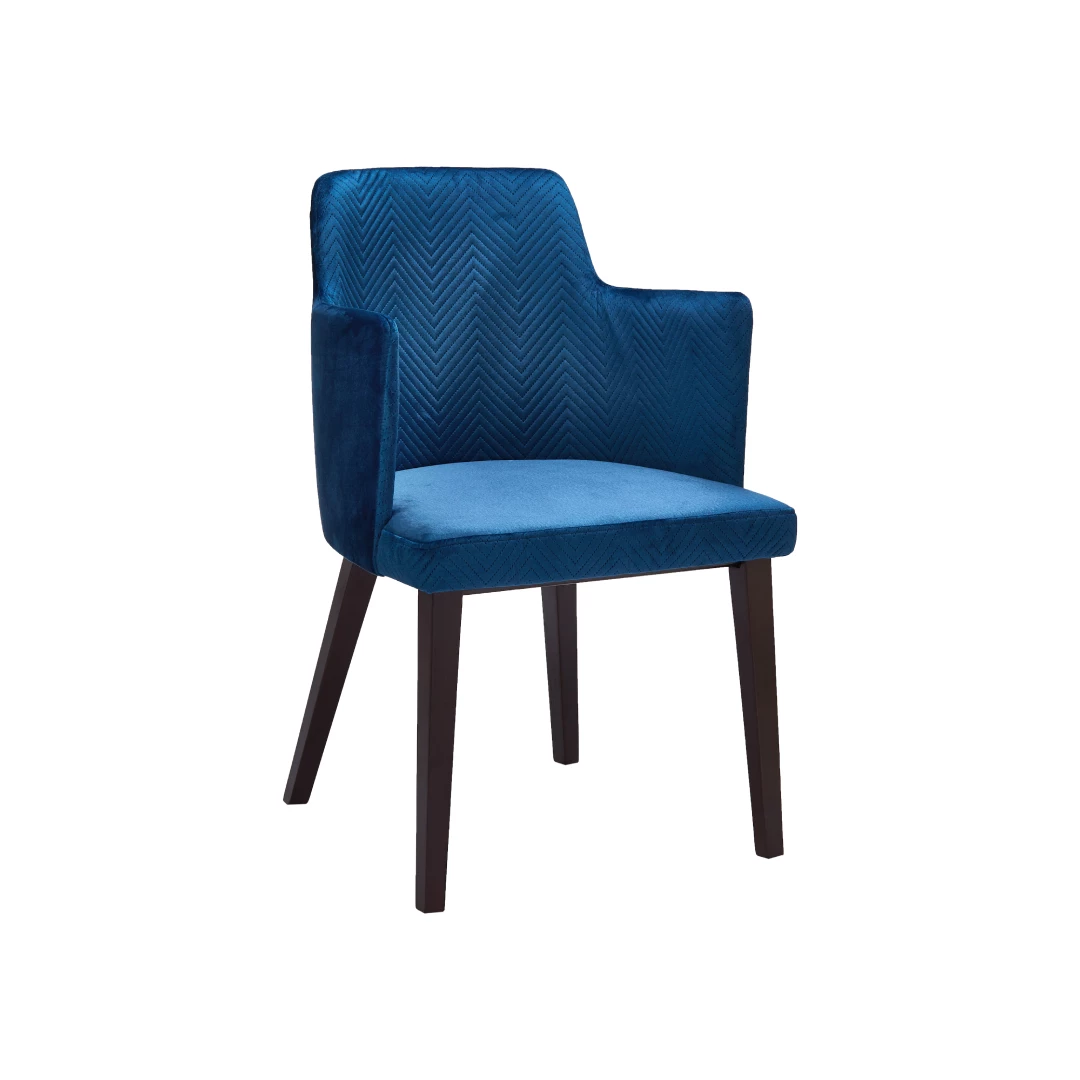 This chair features a solid beech wood frame, finished with a protective polyurethane lacquer that enhances durability and resists daily wear. The seat and backrest are cushioned with high-density foam to maintain comfort and shape even under heavy, continuous use. Offering excellent versatility, the product can be fully customized with a broad selection of high-quality professional fabrics available in a variety of textures and colors, allowing seamless integration into any interior style or branding concept.