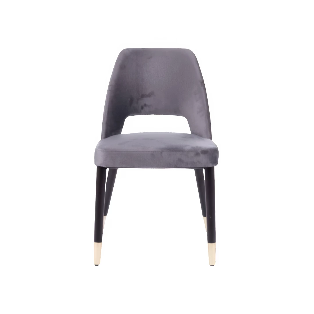 This chair combines elegance and durability with its solid beech wood frame, treated with a protective polyurethane coating for added resistance to daily wear. Padded with high-density foam, it offers long-lasting comfort, ideal for high-traffic areas. With a wide variety of professional upholstery options available, including different textures and colors, this model can be easily tailored to fit diverse interior styles or branding requirements.