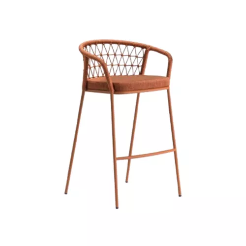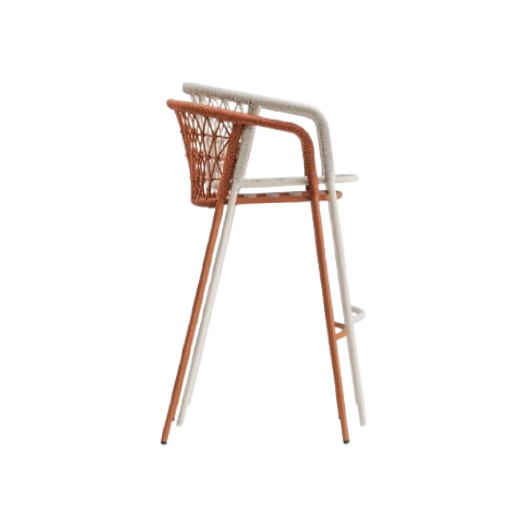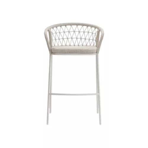 Panarea 3678 is a stylish barstool with a Ø20 mm steel tube frame wrapped in hand-woven Italian polypropylene cord. Its seat cushion, in dry-feel polyurethane foam and matching fabric, offers comfort and durability, making it perfect for terraces, spas, bistros, and restaurant settings.