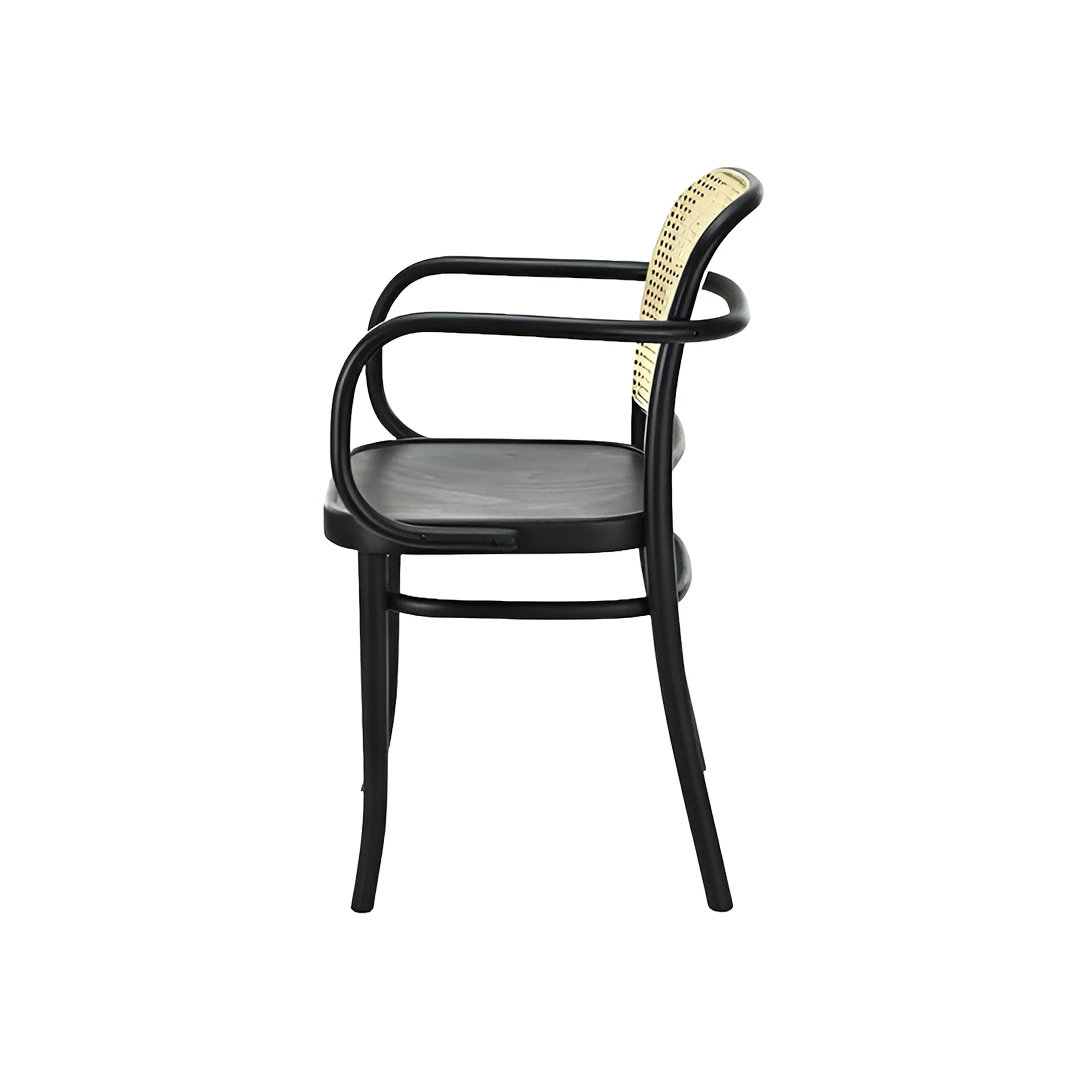 The Pavol A wooden chair with armrests is a classic design inspired by the 1930s. Featuring a solid beech wood frame, a wooden seat, and a stylish cane backrest, it combines vintage charm with lasting durability. Available in multiple wood stain colors, it’s perfect for versatile and elegant HoReCa interiors.