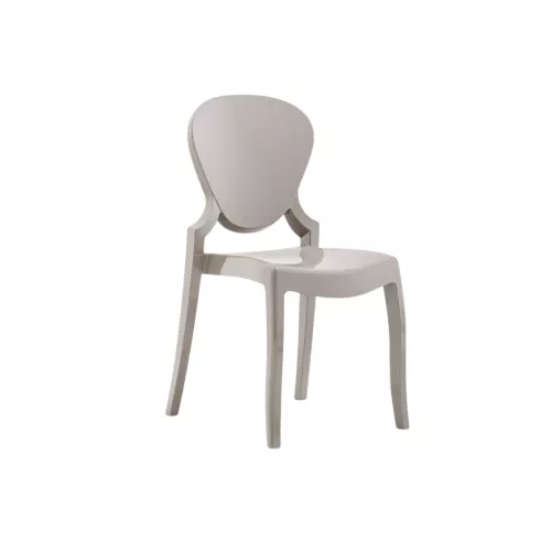 The Queen chair blends traditional inspiration with modern innovation. Its classic silhouette is reinterpreted through contemporary design and advanced production technology. Made using injection-moulded polycarbonate, this chair offers both elegance and durability, suitable for various interior or event settings.
