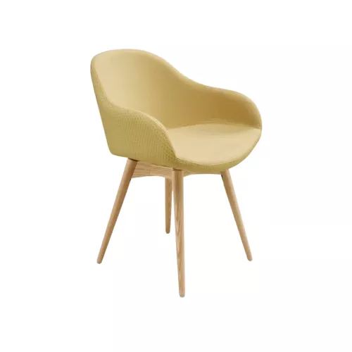 The Sonny collection combines soft, inviting shapes with strong, timeless materials. This chair with low armrests rests on a solid lacquered ash wood frame, blending warmth and elegance in a contemporary form. The upholstered shell provides exceptional comfort and can be customized in a wide range of fabrics, allowing it to adapt perfectly to any Horeca interior.