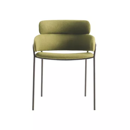 Strike is a contemporary chair with a tubular steel frame available in chrome, copper, or painted finish. The upholstered seat and backrest are made from three separate elements, offering durability and excellent comfort. With a broad choice of fabrics or faux leather, Strike adapts easily to horeca settings and diverse interior design styles.