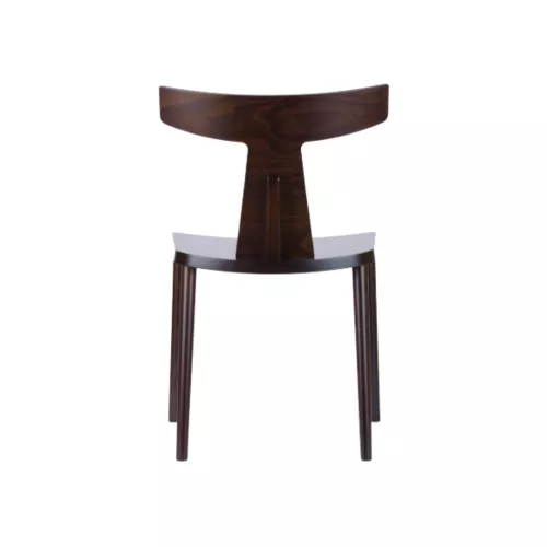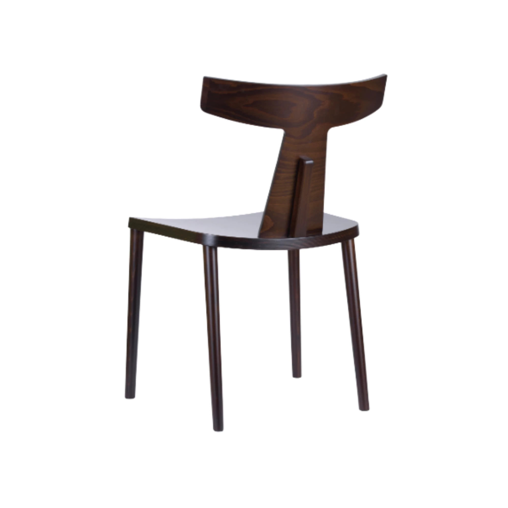 T Chair is made of beech wood and is ideal for restaurants, cafés, bistros, and pubs. The seat can be veneered or upholstered in a wide range of colors and textures, allowing it to blend seamlessly into any interior design.