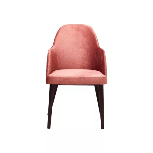 This upholstered armchair offers a perfect blend of elegance and durability, making it ideal for restaurants, lounges, and hospitality venues. Designed with a fully padded seat and backrest, it features high-density polyurethane foam for long-lasting comfort under intensive use. The base is crafted from solid beech wood and can be customized in various wood finishes. Available with either round or square legs, the armchair maintains a refined silhouette and is fully upholstered in professional fabrics or synthetic leather, offering flexibility in style and design.