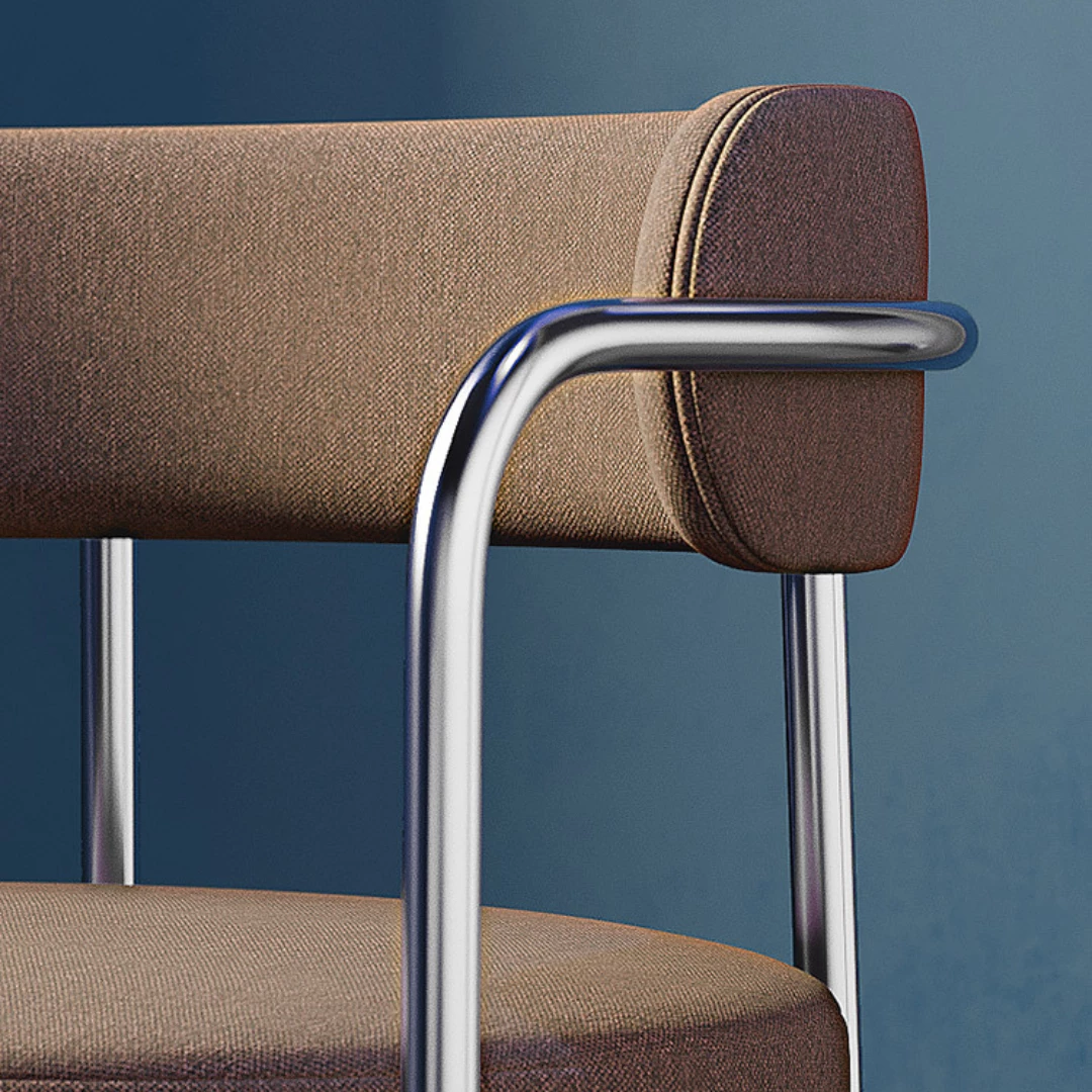 The Yoko Armchair features soft upholstery and a tubular steel frame, with a unique play of curves and angles that suit any modern space. Its suspended backrest adds a light, refined touch. Fully customizable with your choice of fabric and frame finish, Yoko offers a warm, welcoming seat for contemporary hospitality settings.